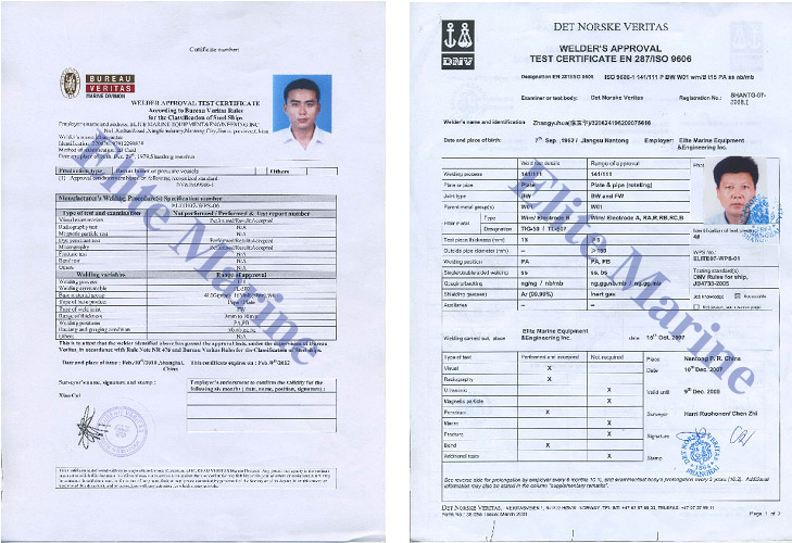 Elite Marine Boiler Service hold relevant certificates and approvals necessary for operating smoothly and continuously substantiating repair procedures and solutions, all of our welders are qualified by Classification society.